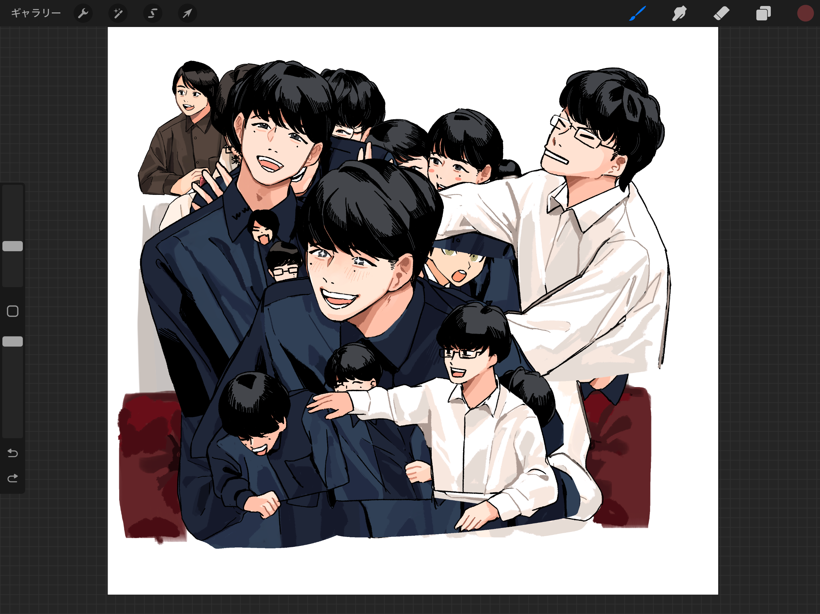 QK描き始めて、思ったより似顔絵描けるなというのが所感だったのだけれど、山本さんだけずっと似ない、似せられたことがない。要因がわからない。おそらく、元の絵柄で手ぐせで描いていたパーツの要素(一番大きなところで輪郭、そして目の大きさとか、若干吊り目とか、二重とか…)と近すぎて、どうも二次元的になりすぎてしまい、特徴が出ないからかもしれない。山本さんって正直一番特徴的なのは鼻なのだけれど、山本さんだけ鼻をがっつり描写しても二次元的なポップさがなくなってしまう、どう簡略表現で鼻を表現するかがミソなのかもしれない