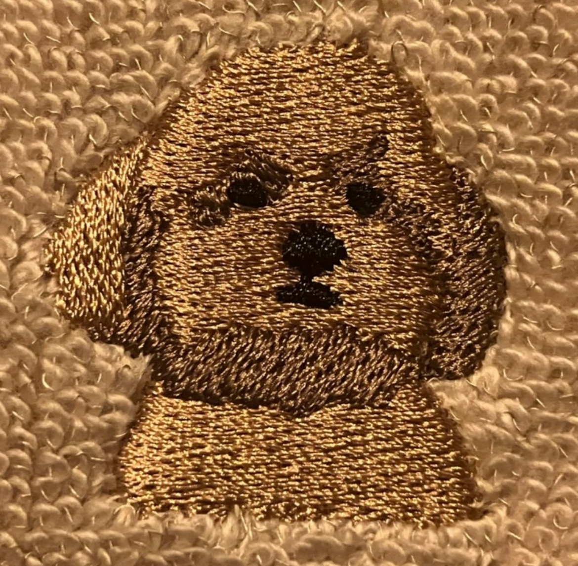自画犬のような刺繍がされたタオルハンカチを、以前友人がプレゼントしてくれた。LINEのアイコンにしている。
