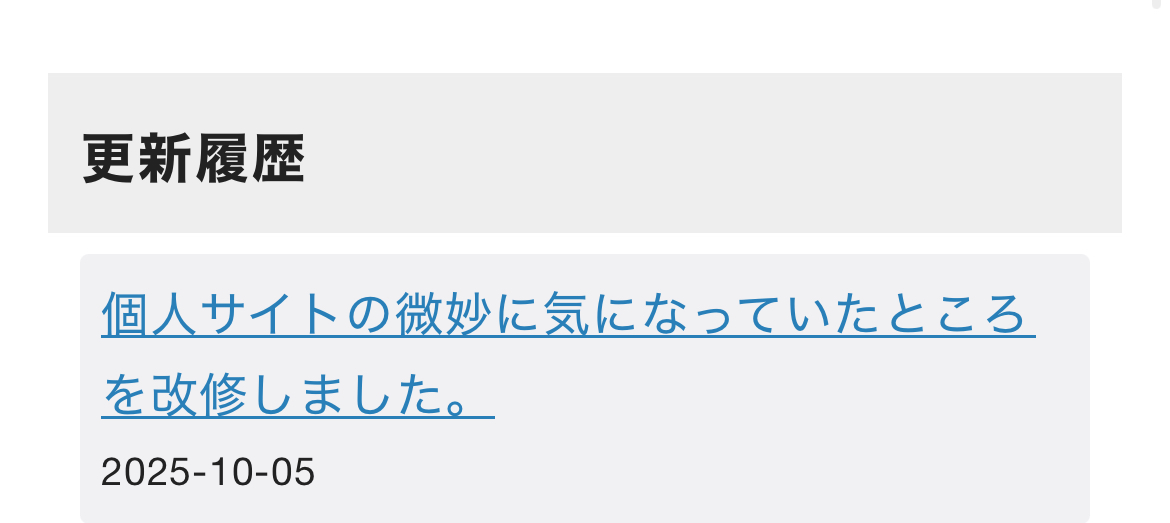 ↓これは最新の投稿が個人サイトの見た目の修正だったために、ただの更新履歴と区別がつかないてがろぐの更新履歴