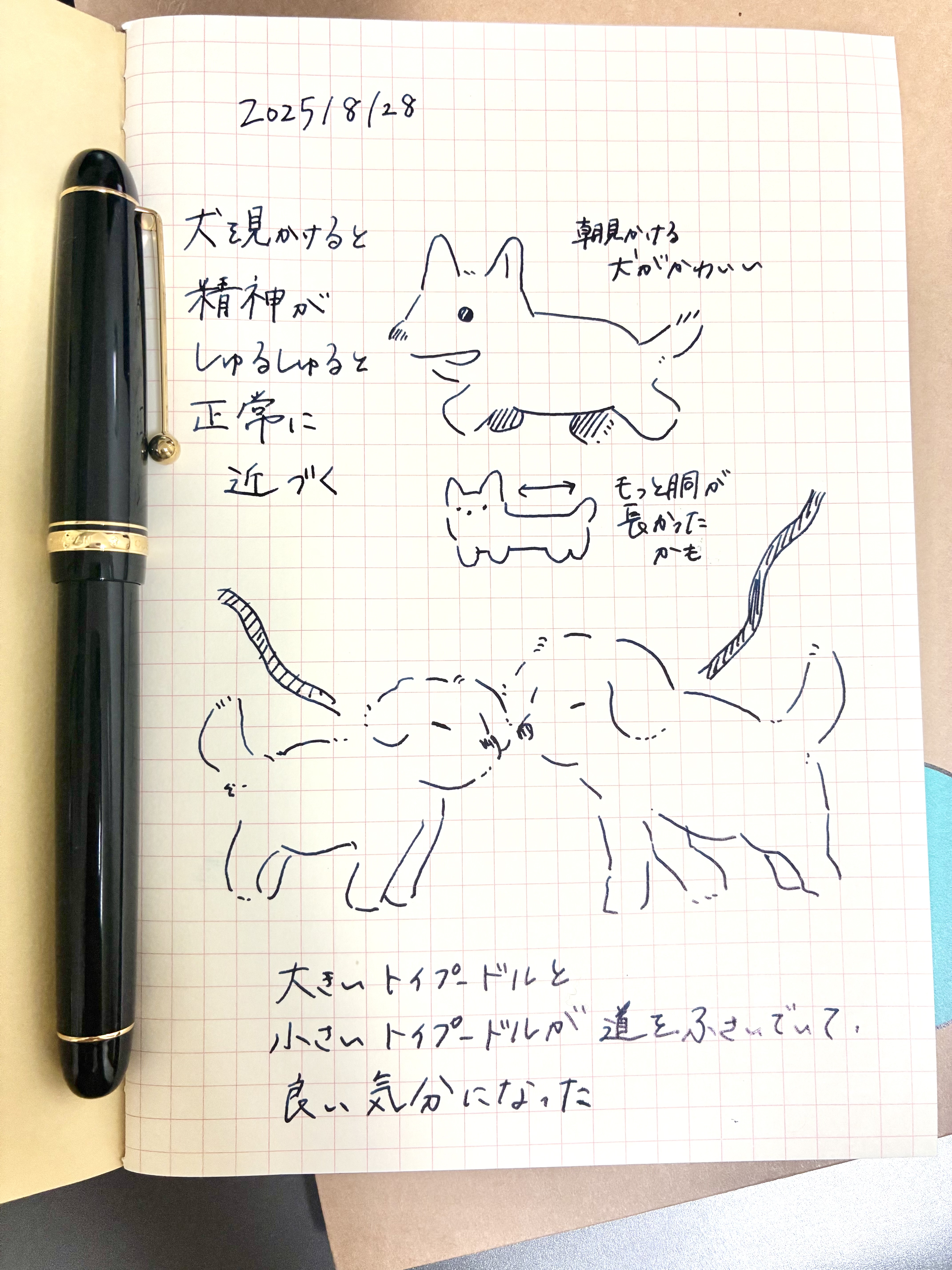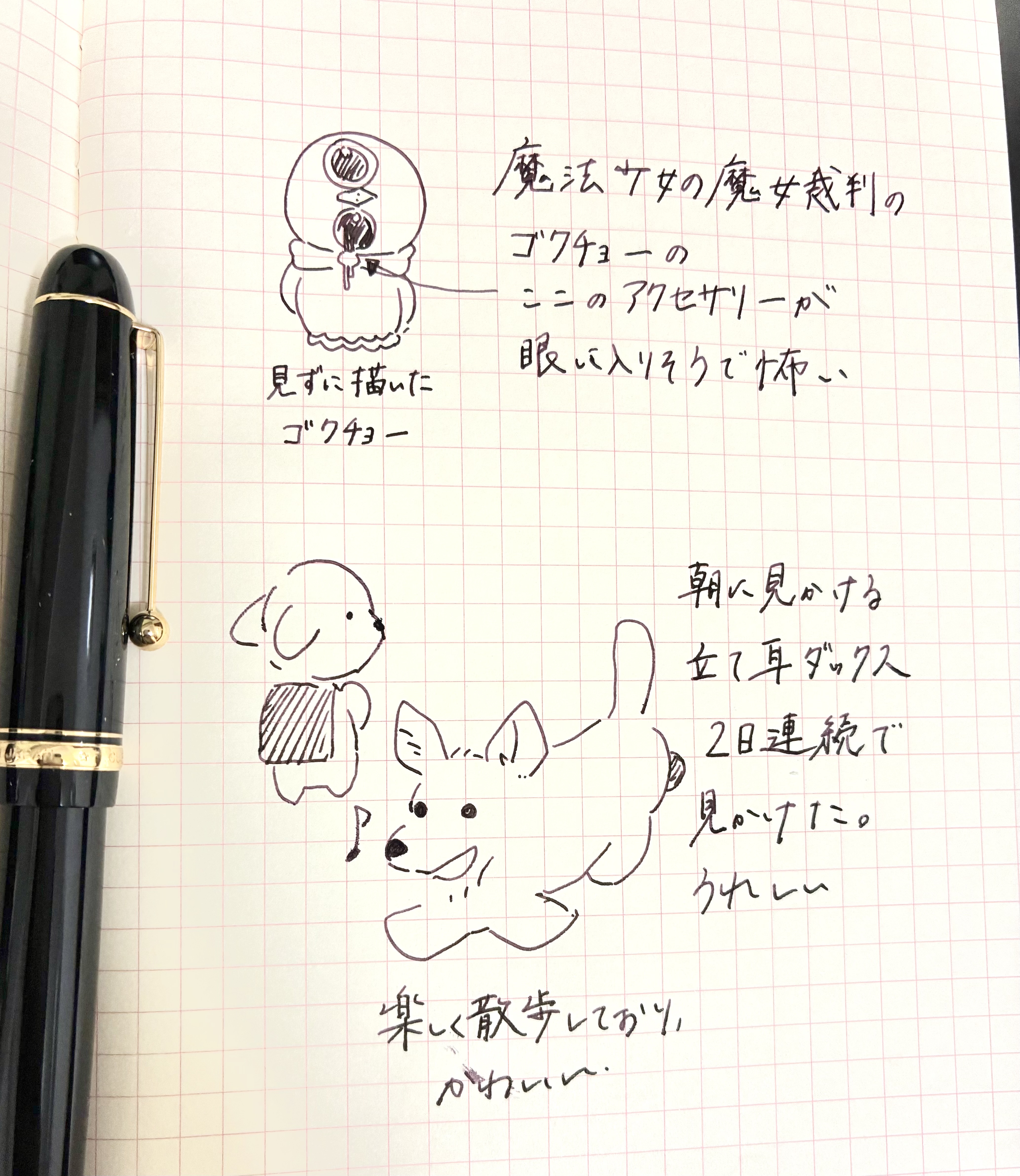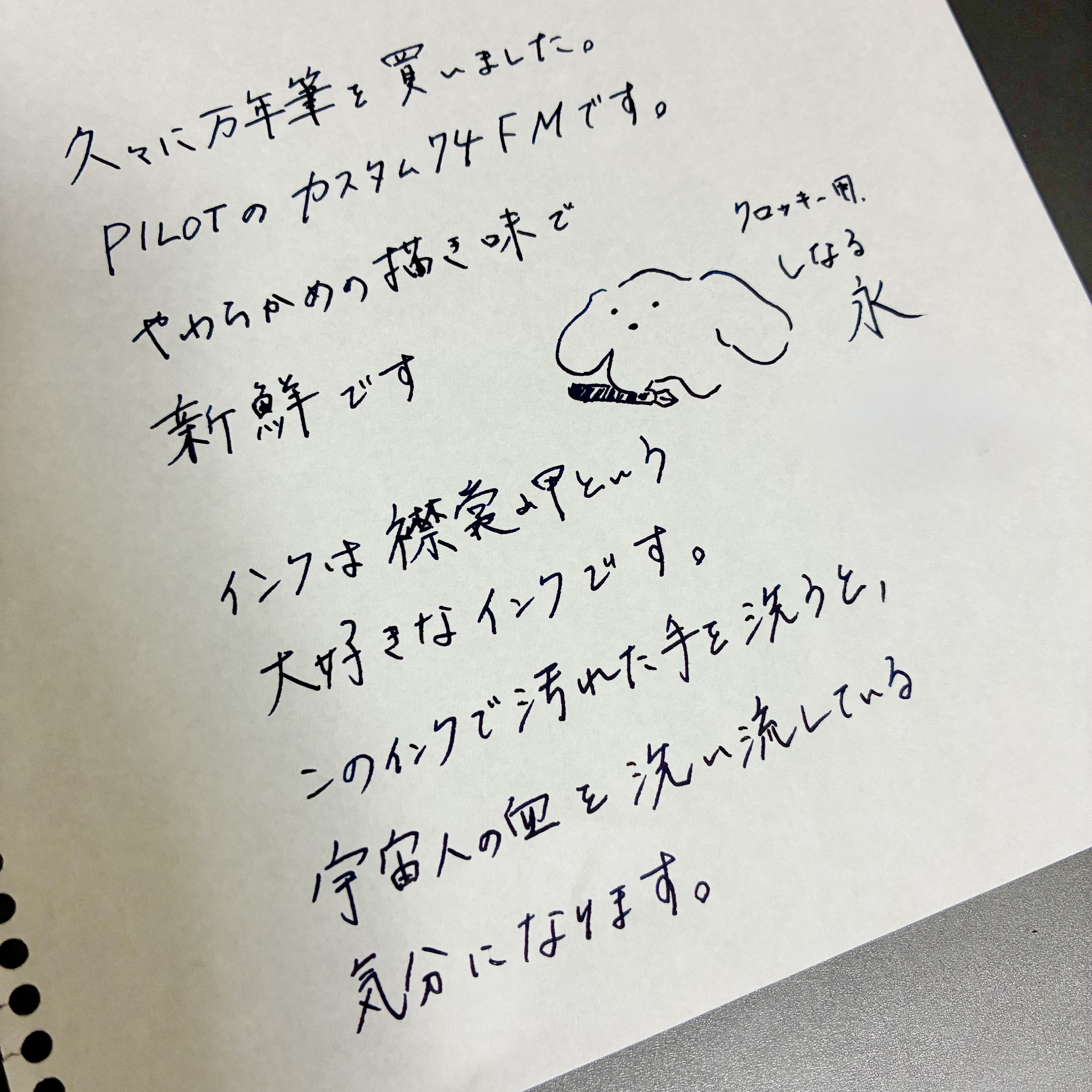 そして三本目としてPILOT カスタム74 FM。仕事のストレスにより財布の紐が緩くなっている最中、試しもせずにネットで購入した。メトロポリタンよりも柔らかめで、クロッキーに向いていて、かつPILOTの万年筆をChatGPTに問うたところ指定された。実際しなやかさがちょうどよく、クロッキーに良さそう。しなやかさゆえに字を書くと疲れるが、絵を描いてみるとその強弱の入りやすさに驚く。非常に気に入ったが、字しか試さない店頭だと買わなかった気がするので、これはこれで良かった。