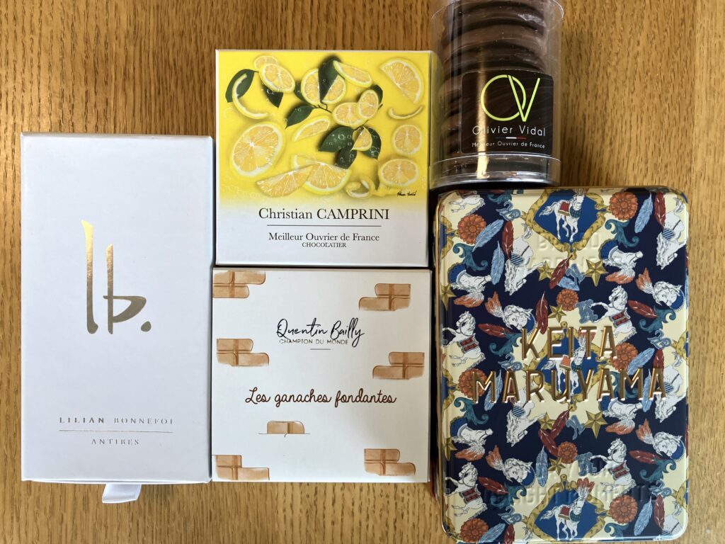 結論、今年の一等賞はケイタマルヤマのクッキー缶。常設でいつでも買えるのでまた今度別の缶も買いたくなった。そして1つのショコラごとのまとまりや組み合わせが楽しめるカンタン・バイィは来年も継続したい。クリスチャン・カンプリニのシトロンショコラも美味しかったけど、フルーツ系のショコラはフルーツの味の方が印象に残りがちだから、来年からフルーツがテーマになっているショコラアソートは選抜から抜いてもいいかな。