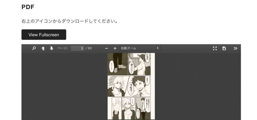 限定公開の漫画の表示・PDFダウンロード用に入れた。表示の右上からダウンロードもできる。他にも冊子状に表示するプラグインもあったものの、余計なエフェクトがあると見づらいのと、ほとんど右開きだったので縦表示で妥協し、PDF Posterを採用した。