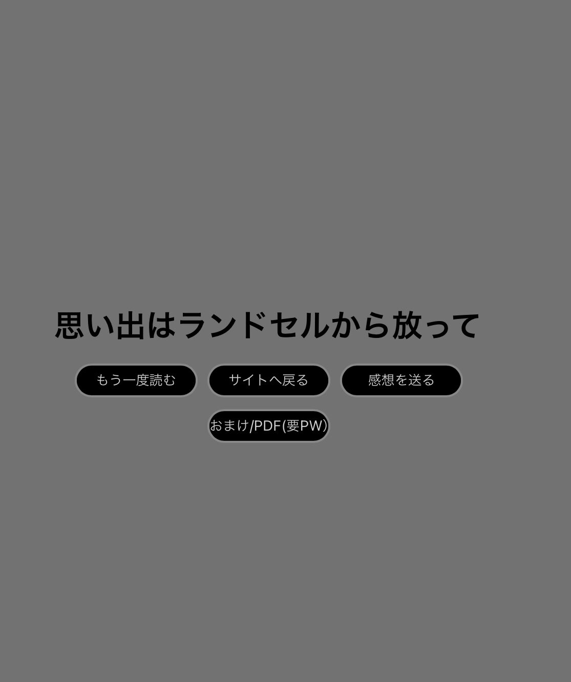 その上で全体公開(Web再録)している漫画のビューワの最後に限定公開のページに飛ぶボタンをつけた。これにより、パスワードを持っているけど全体公開パートだけ気楽に読みたい人が、最後にやっぱり限定公開パートを見たくなった時に気軽に飛ぶことができる。